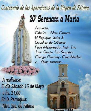 En el Centenario de las Apariciones de la Virgen de Fátima, la Parroquia ubicada en Caseros 1904 organizó la 20º edición de la Serenata a María.